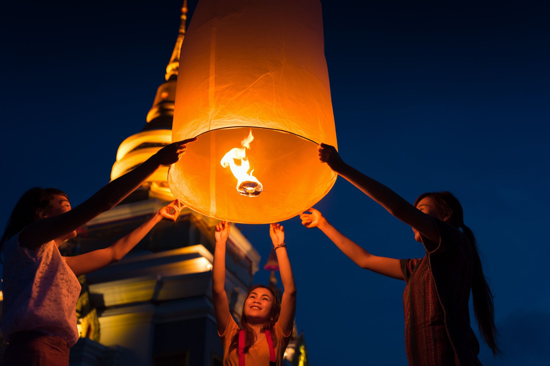 Lá, viveremos momentos únicos – das visitas aos templos sagrados à emoção do Yee Peng, o famoso Festival das Lanternas, quando o céu se ilumina com milhares de lanternas flutuantes.